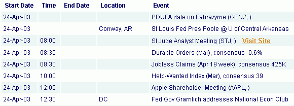 Brokerage firm conferences and schedules, industry conferences, analyst meetings, earnings reports, economic reports, political speeches, Federal Reserve meetings, holidays - they are all here.
